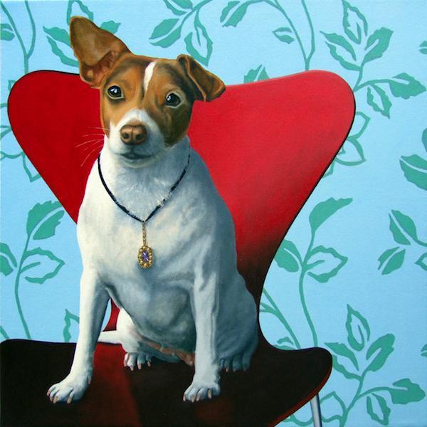 Paula Zimmerman is a British artist who paints portraits of animals, primarily dogs and occasionally cats. She has an uncanny ability to see in her subjects no doubt what their owners also see and it’s this “personalizing” that makes them so endearing. Zimmerman is the 'go to’ artist for portraits of other people’s animals and commissioned portraits of your own: her technical skills are sublime, as is her sense of color and pattern, plus she has a sense of humor.