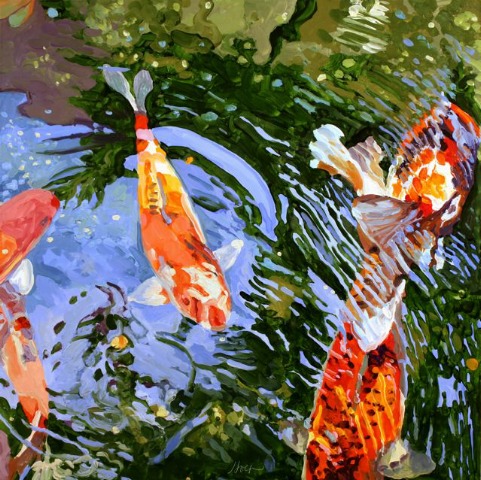 Nine Koi Oil on canvas 24 x 36 |